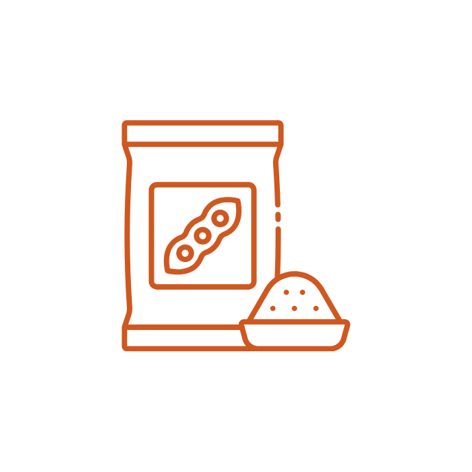 Pasta de soya, pasta de canola, grano molido, aceite de soya, salvado de trigo, aminoácidos (lisina, metionina, treonina), saborizantes, ortofosfato, calcio, sal, premezclas vitamínicas y minerales.